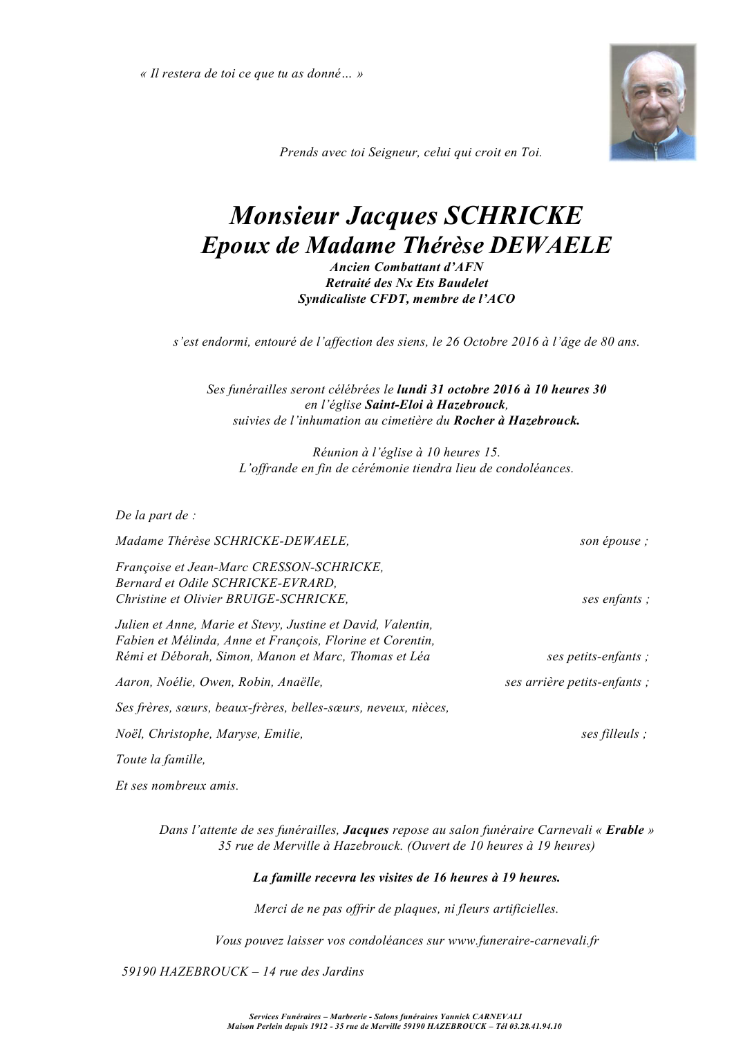 Epoux de Madame Thérèse SCHRICKE néé DEWAELE