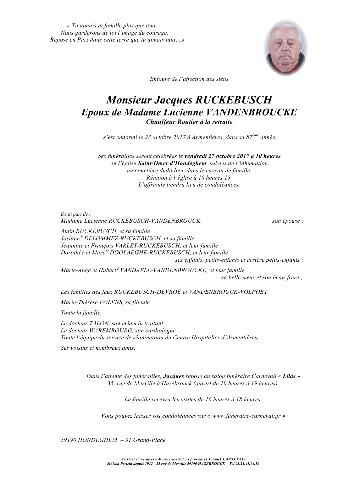 Epoux de Madame Lucienne VANDENBROUCKE