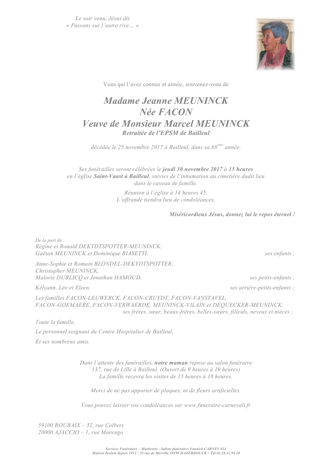 Veuve de Monsieur Marcel André Joseph MEUNINCK