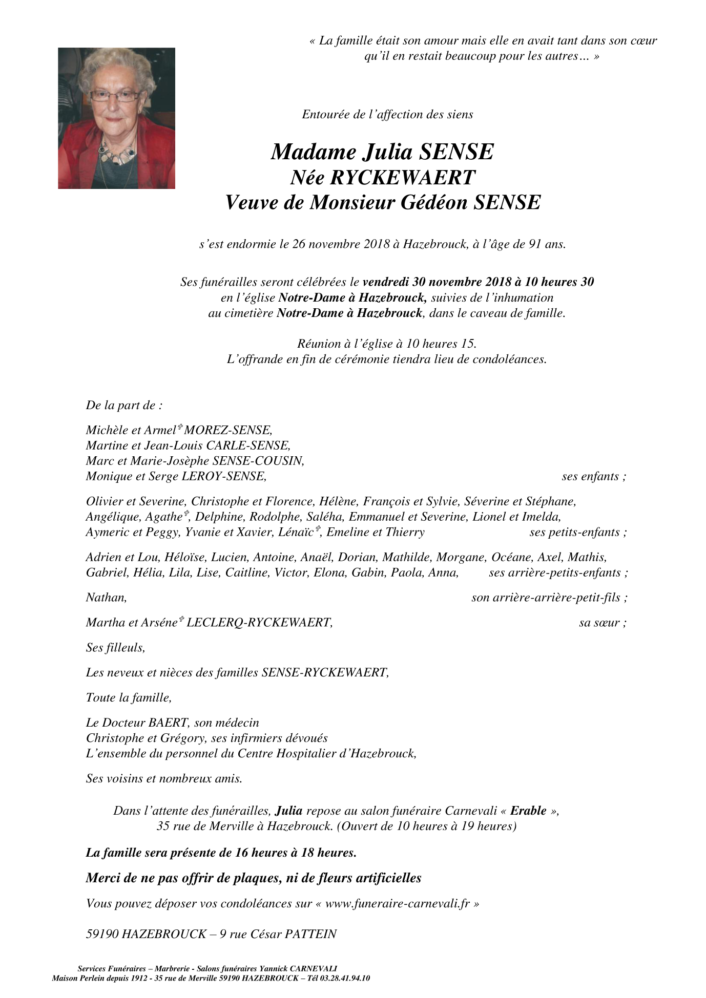 Madame Julia SENSE née RYCKEWAERT