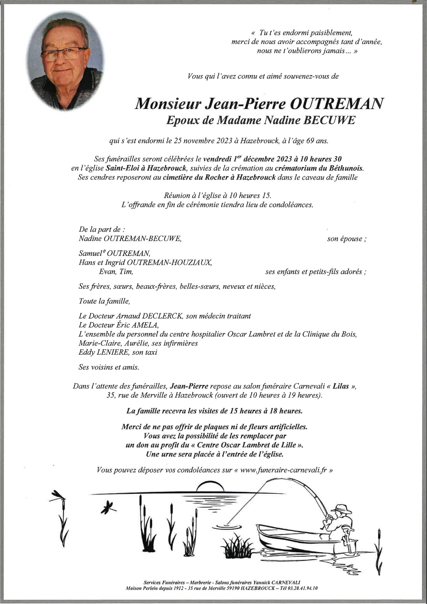 Décédé à Hazebrouck (59190, France) le samedi 25 novembre 2023 à l'âge de 69 ans