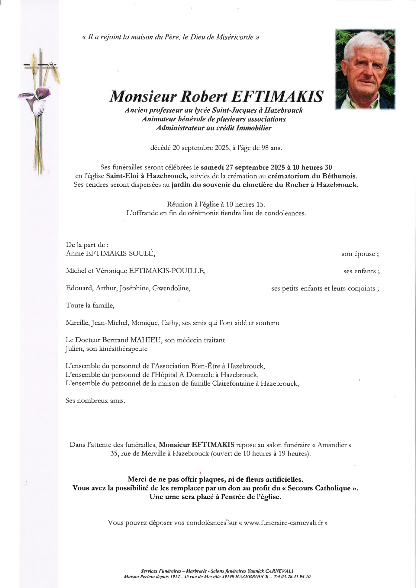 Décédé à Hazebrouck (59190, France) le samedi 20 septembre 2025 à l'âge de 98 ans