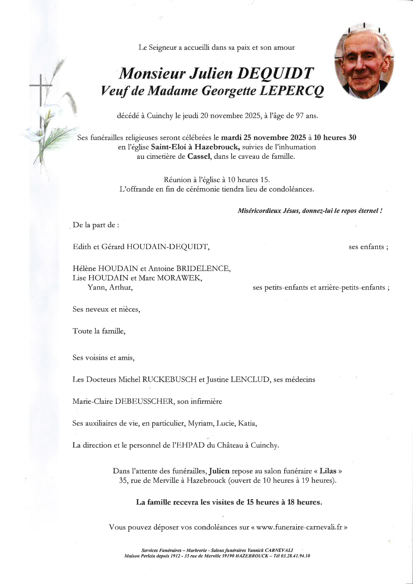Décédé à Cuinchy (62149, France) le jeudi 20 novembre 2025 à l'âge de 97 ans