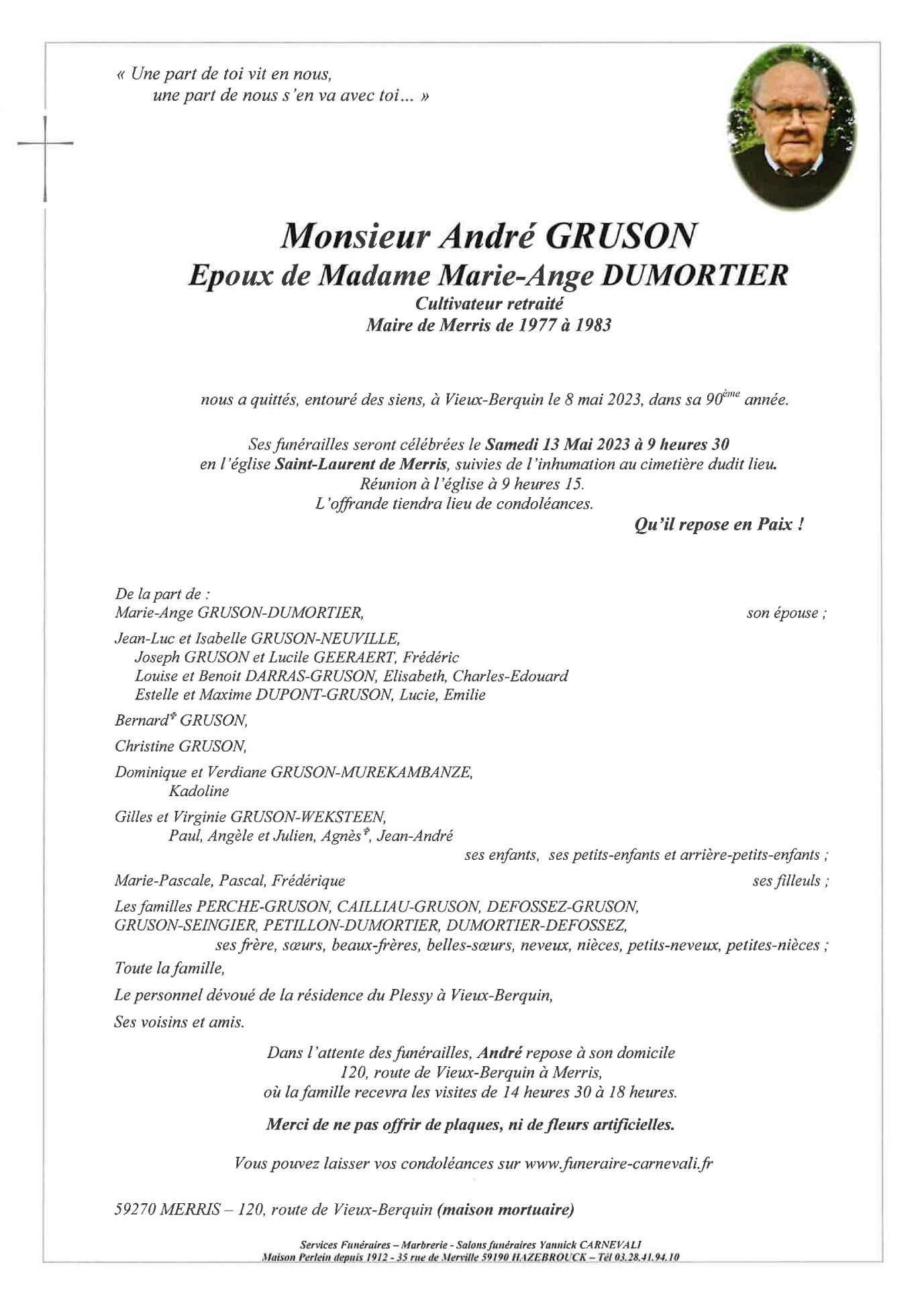 Décédé à Vieux-Berquin (59232, France) le lundi 8 mai 2023 à l'âge de 89 ans