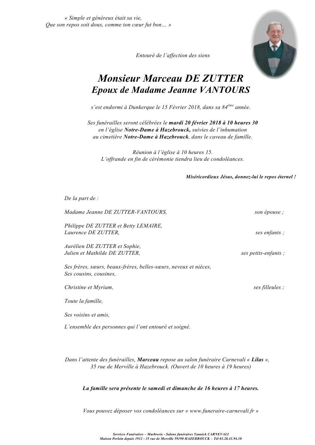Décédé à Dunkerque (59140, France) le jeudi 15 février 2018 à l'âge de 83 ans
