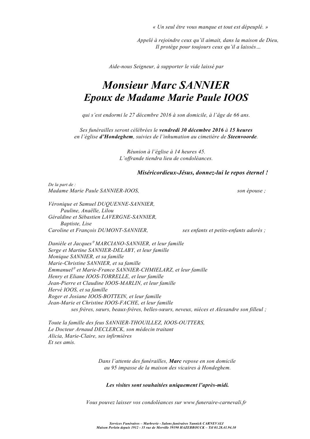 Décédé à Hondeghem (59190, France) le mardi 27 décembre 2016 à l'âge de 66 ans
