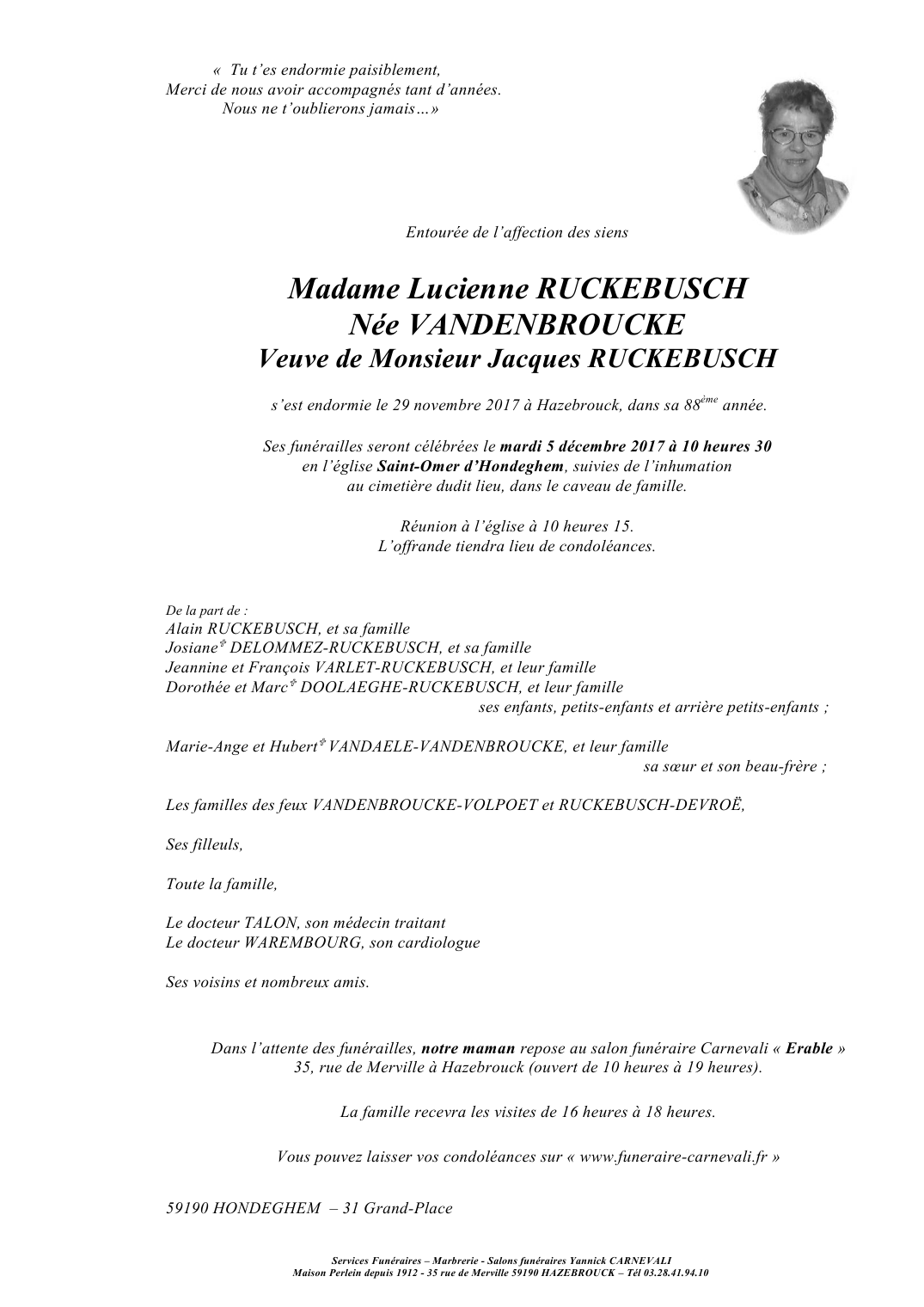 Madame Lucienne RUCKEBUSCH née VANDENBROUCKE