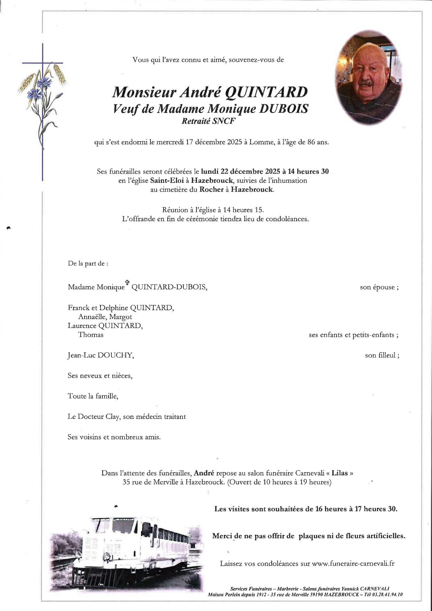 Décédé à Lomme (59160, France) le mercredi 17 décembre 2025 à l'âge de 86 ans