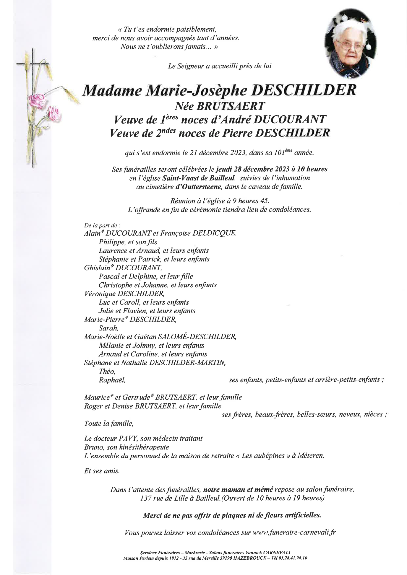Madame Marie-Josèphe DESCHILDER née BRUTSAERT