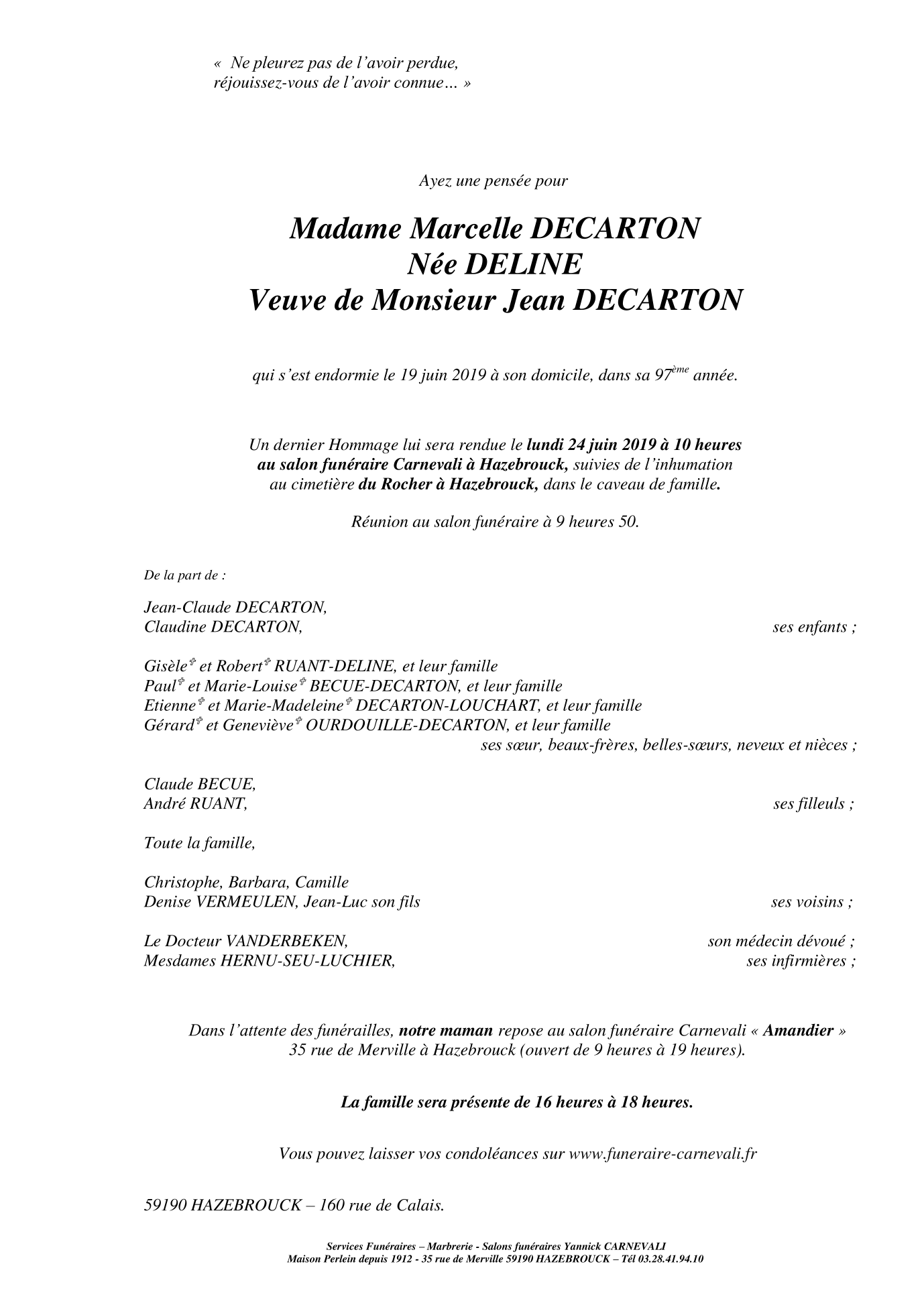 Madame Marcelle DECARTON née DELINE
