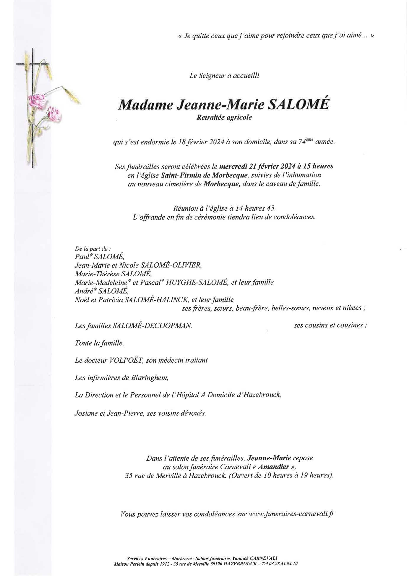 Madame Jeanne-Marie SALOME