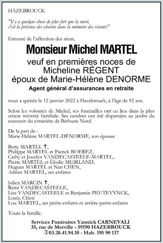 Décédé à Hazebrouck (59190, France) le mercredi 12 janvier 2022 à l'âge de 92 ans