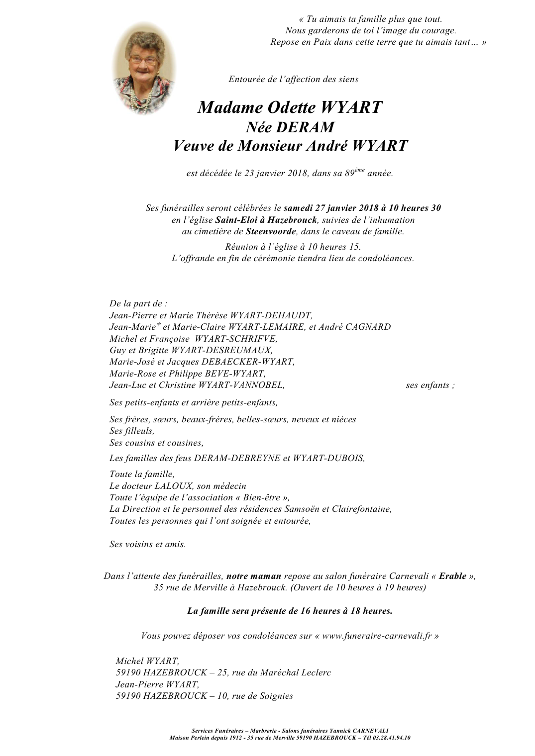 Veuve de Monsieur André WYART