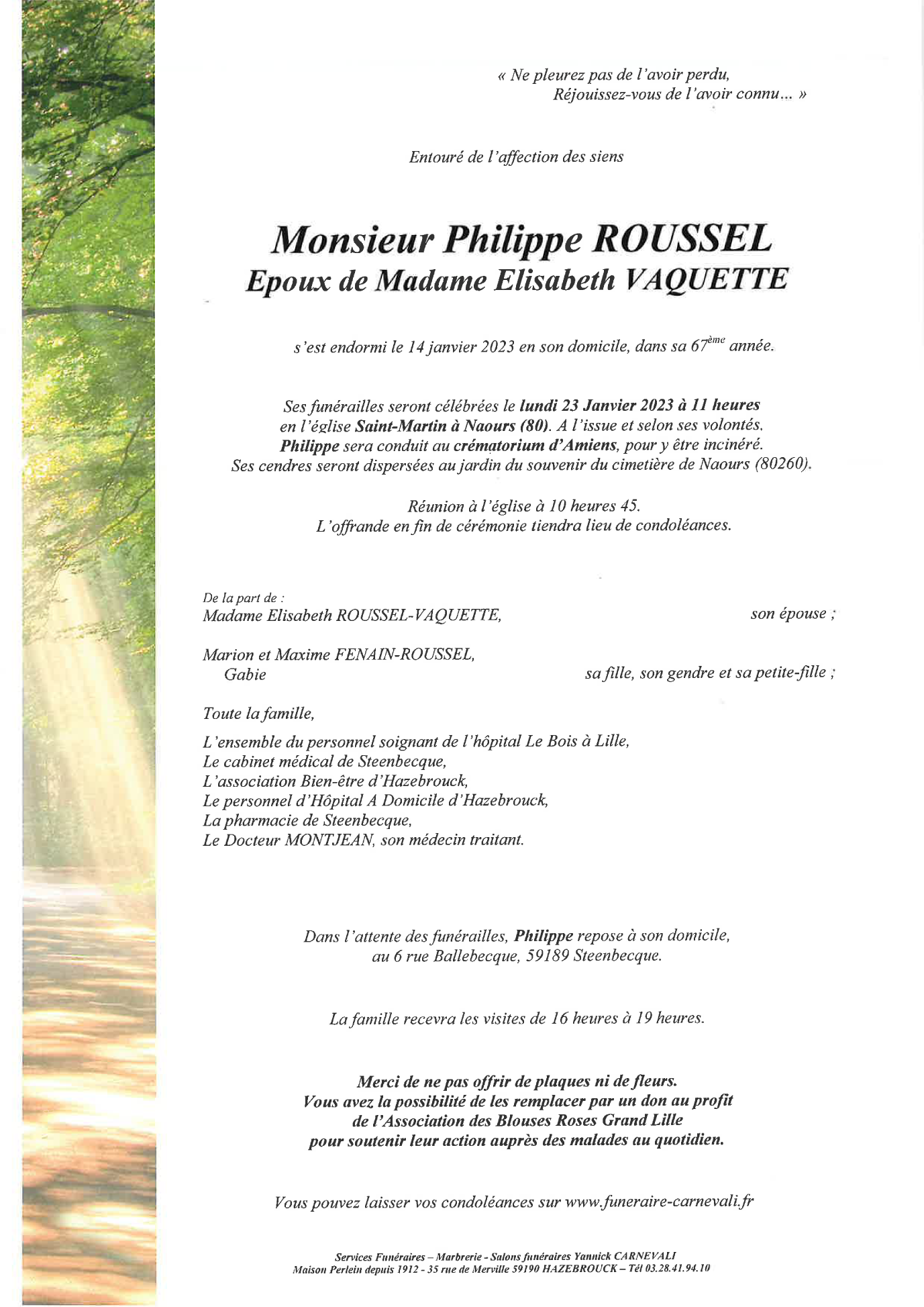 Décédé à Stéenbecque (59189, France) le samedi 14 janvier 2023 à l'âge de 66 ans