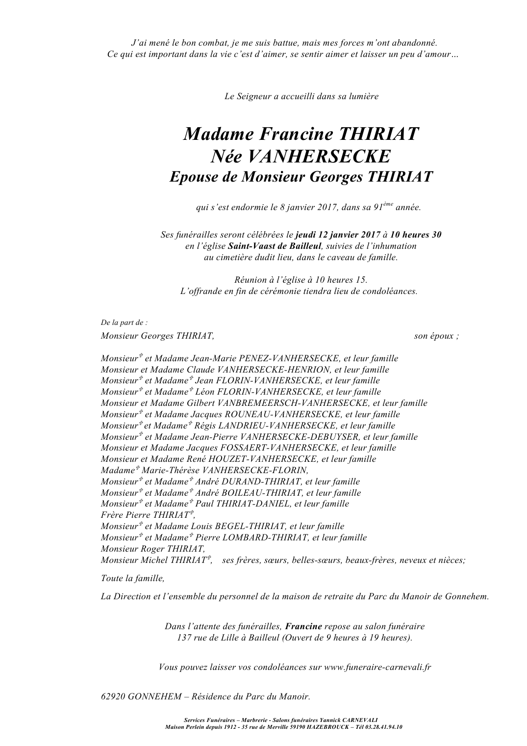 Madame Francine THIRIAT née VANHERSECKE