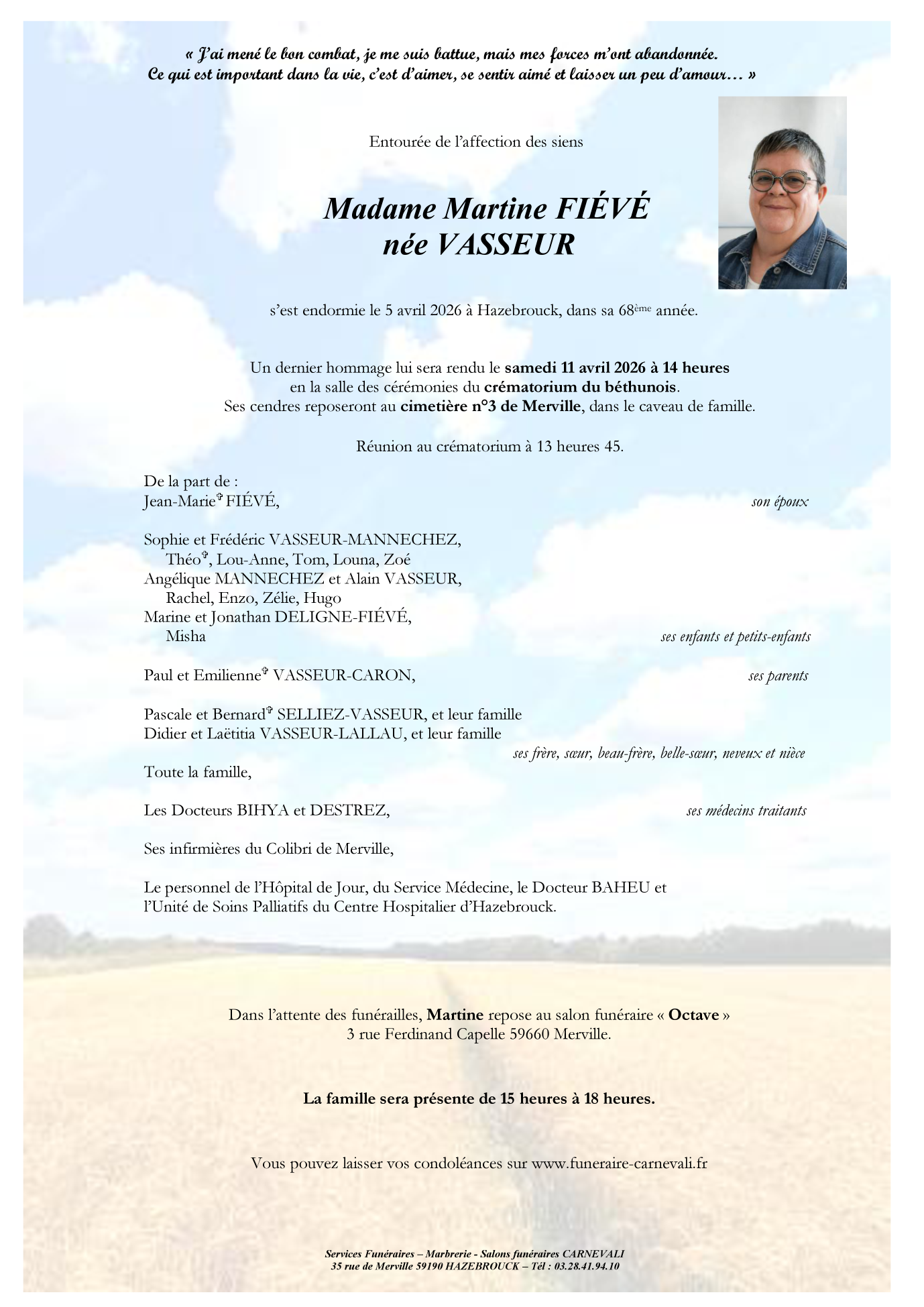 Madame Martine FIEVE née VASSEUR