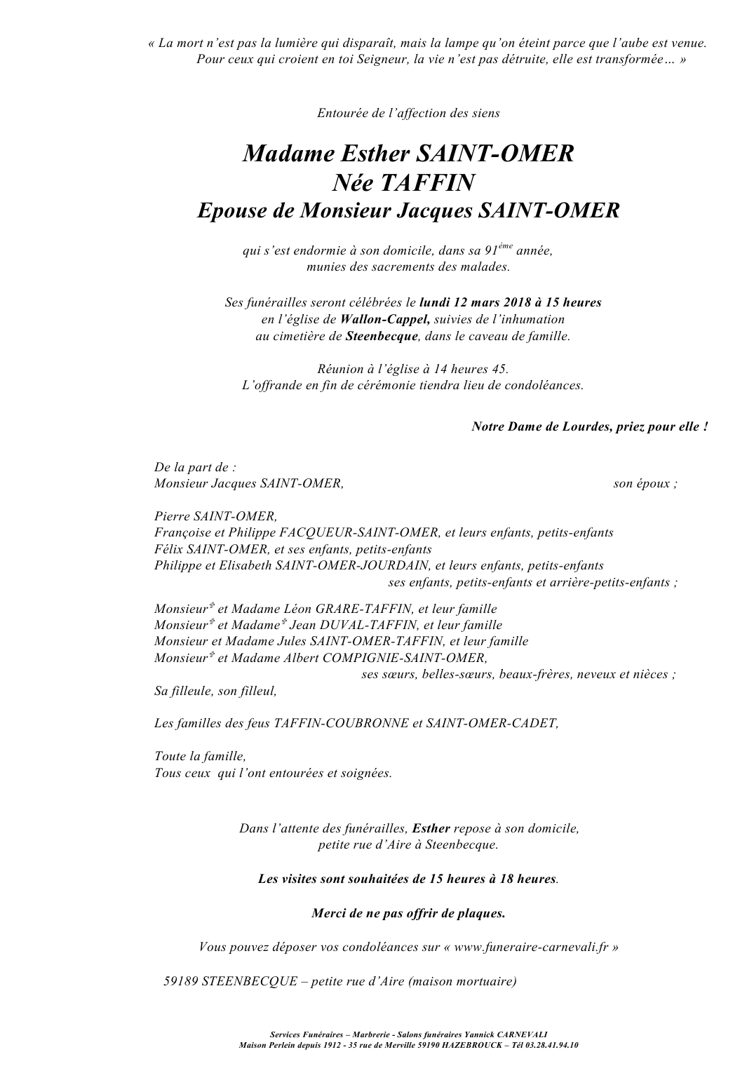 Madame Esther SAINT-OMER née TAFFIN