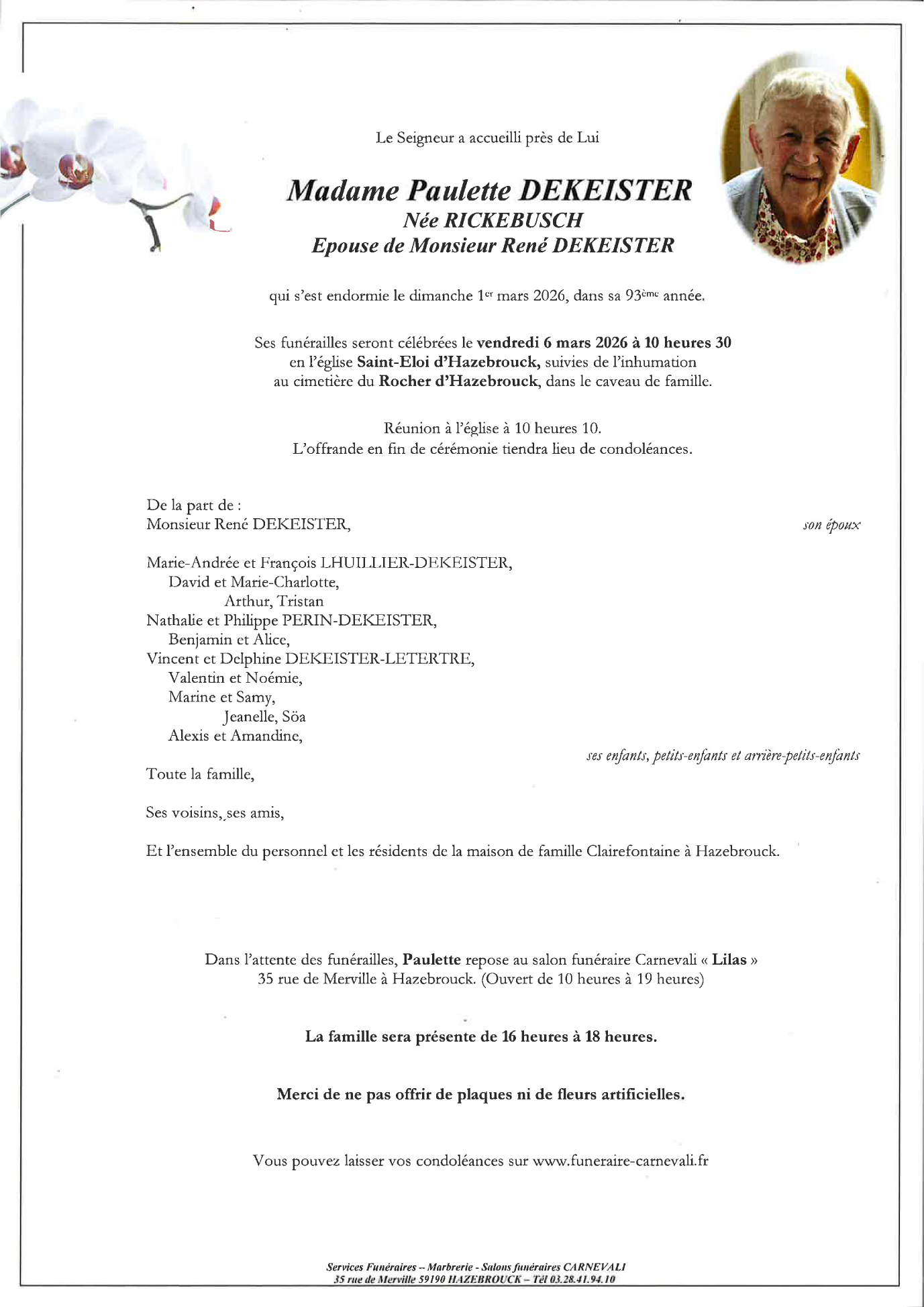 Epouse de monsieur René DEKEISTER