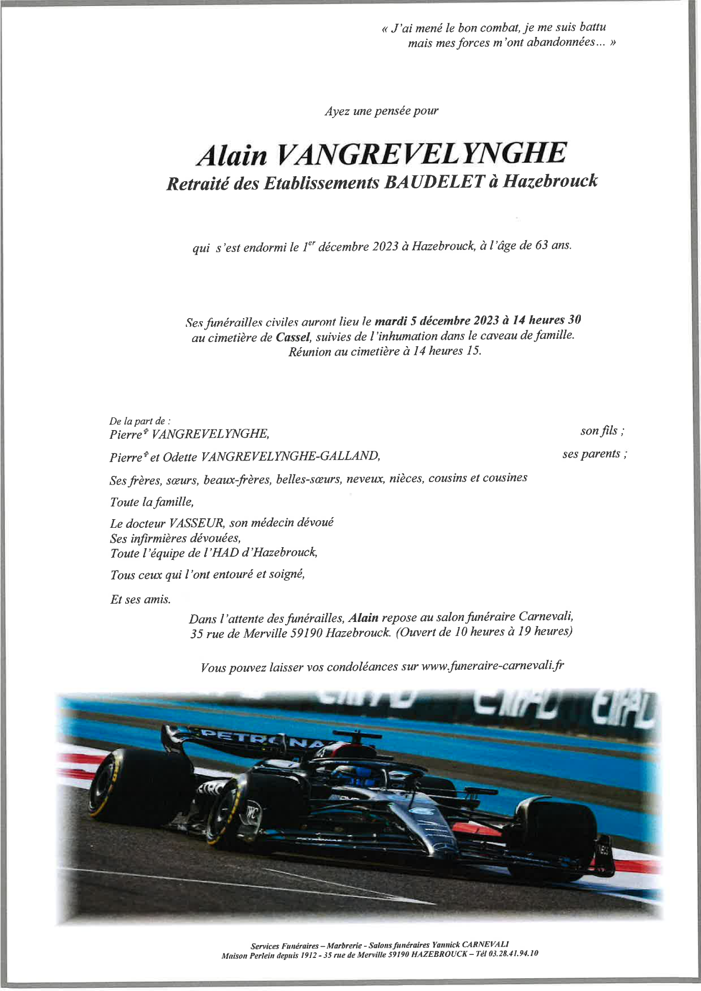 Décédé à Hazebrouck (59190, France) le vendredi 1 décembre 2023 à l'âge de 63 ans
