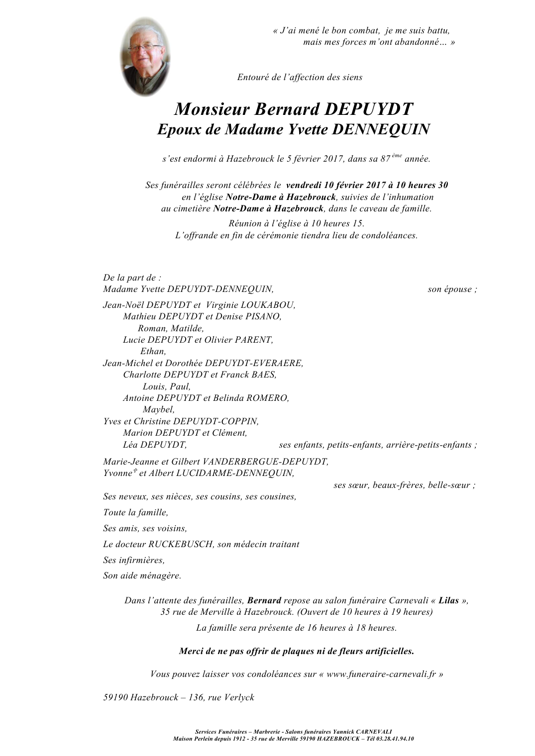 Epoux de Madame Yvette DEPUYDT née DENNEQUIN