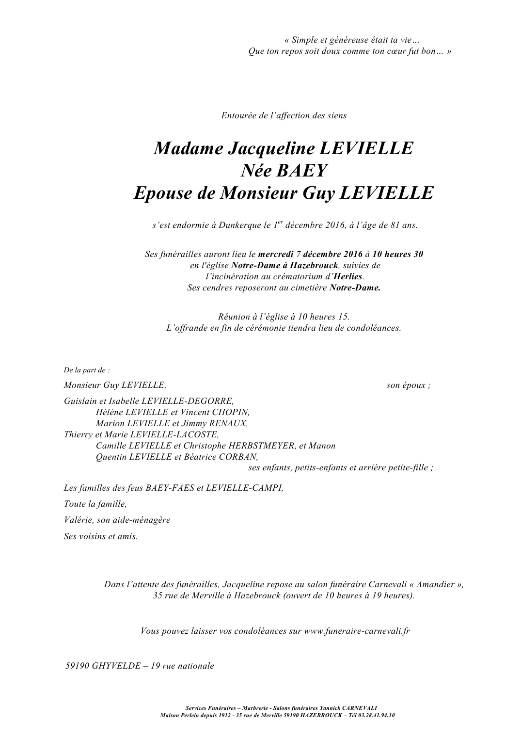 Madame Jacqueline LEVIELLE née BAEY