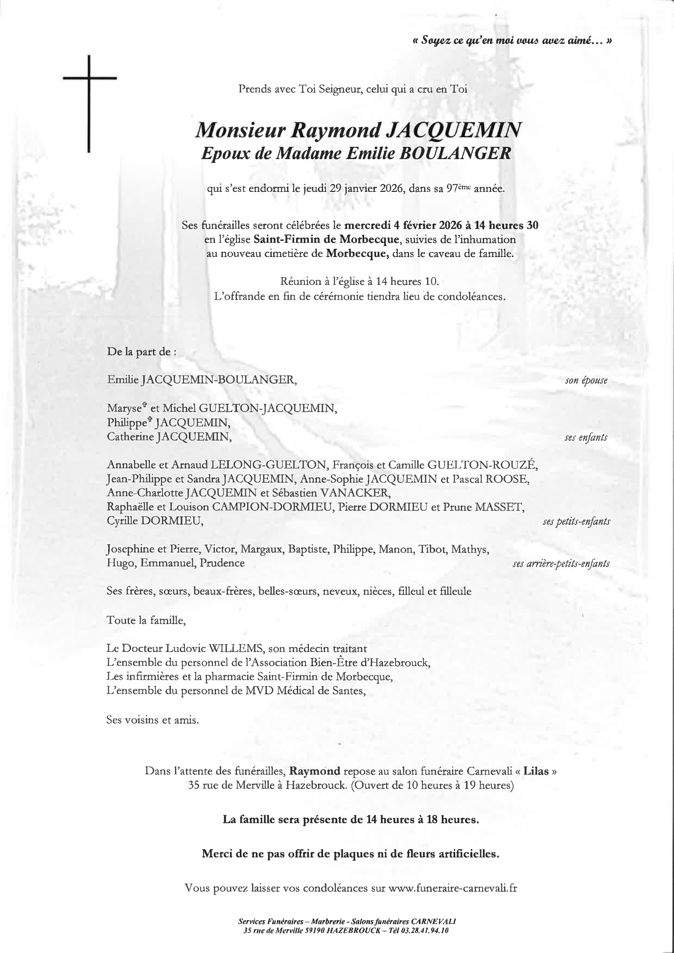 Décédé à Morbecque (59190, France) le jeudi 29 janvier 2026 à l'âge de 96 ans