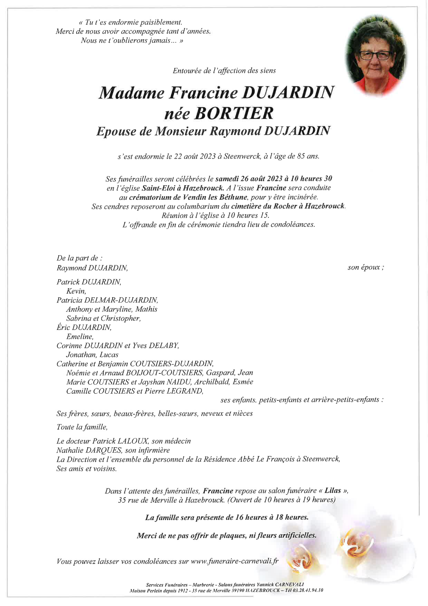 Décédée à Stéenwerck (59181, France) le mardi 22 août 2023 à l'âge de 85 ans