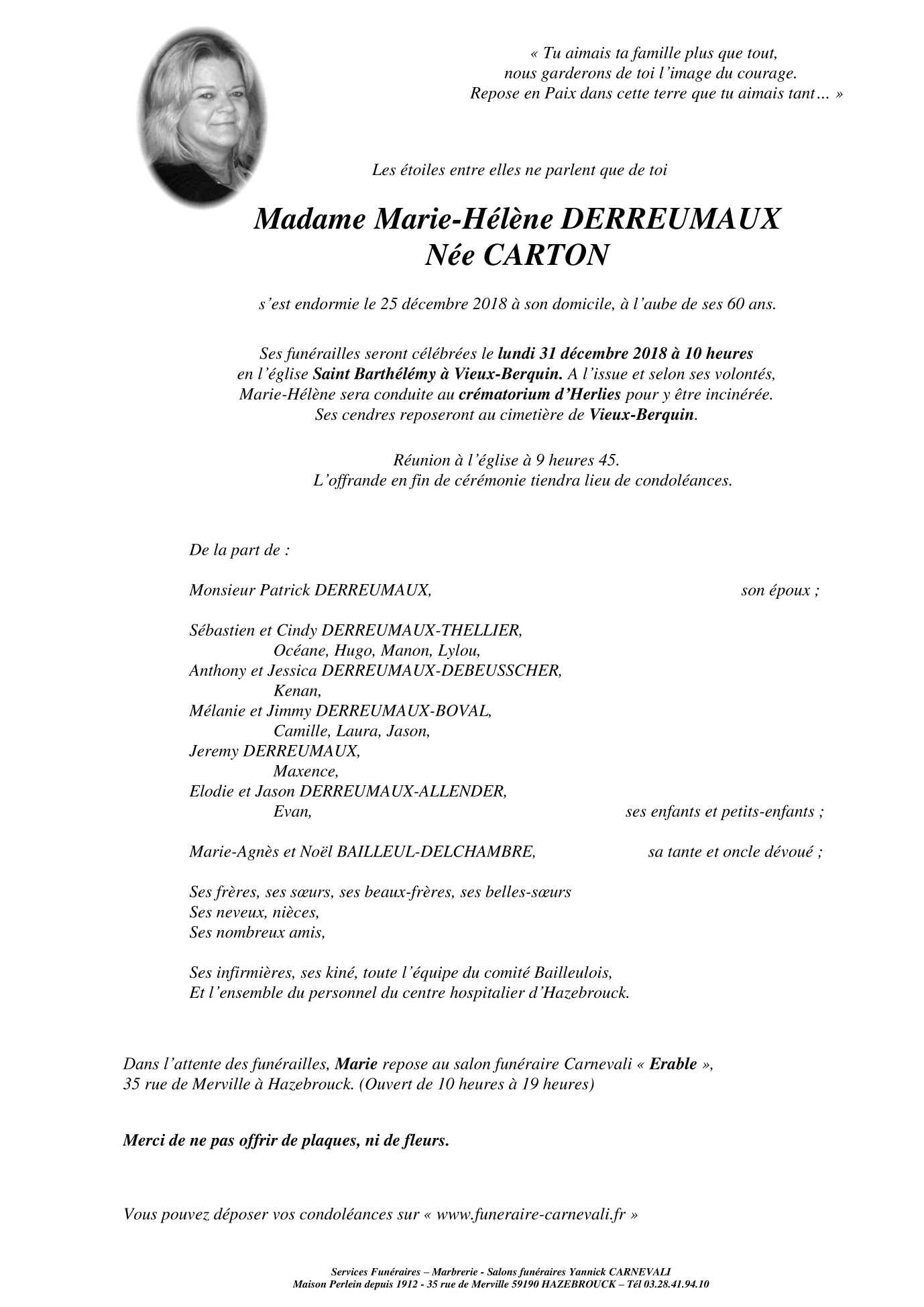 Madame Marie-Hélène DERREUMAUX née CARTON