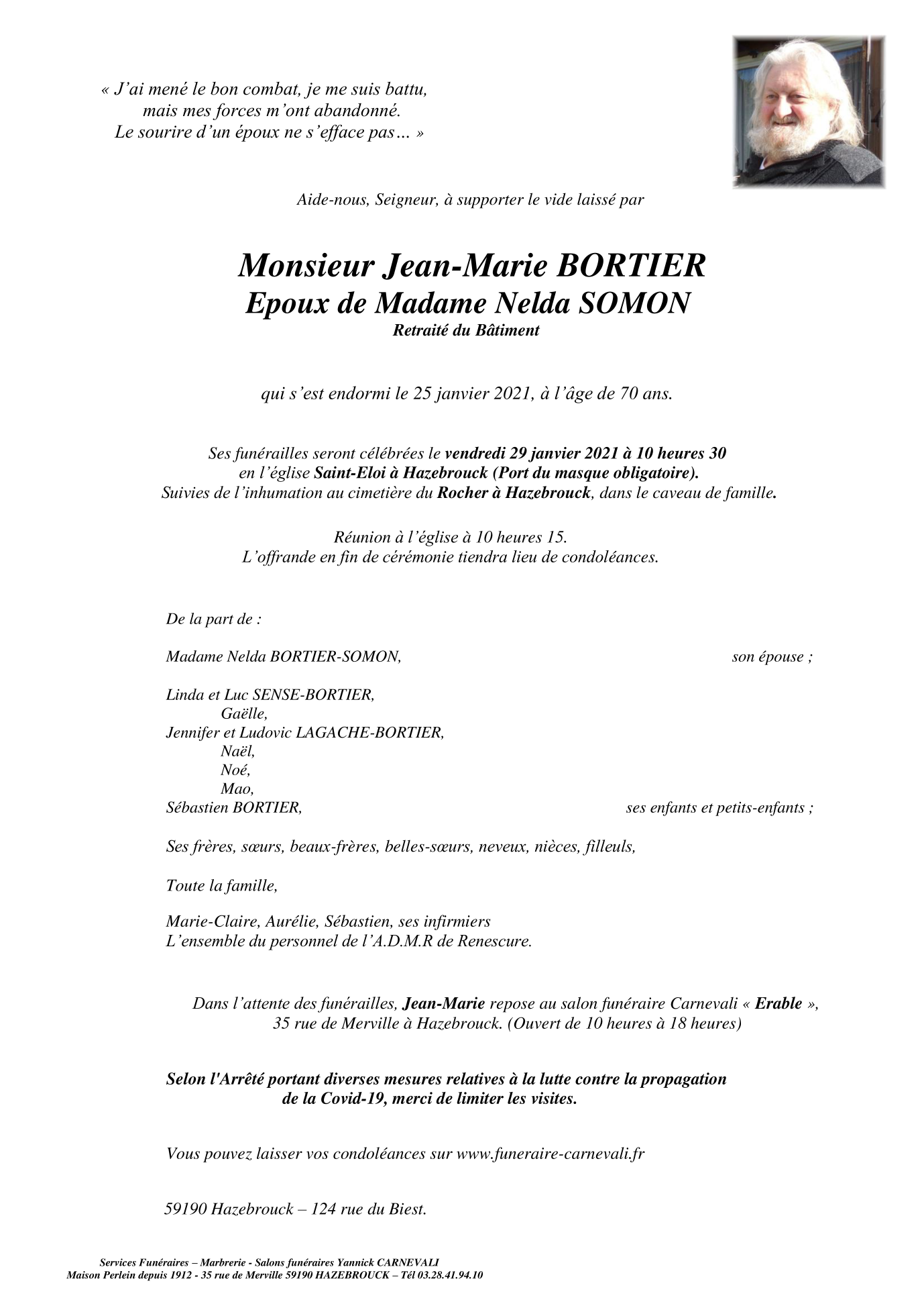 Décédé à Hazebrouck (59190, France) le lundi 25 janvier 2021 à l'âge de 70 ans