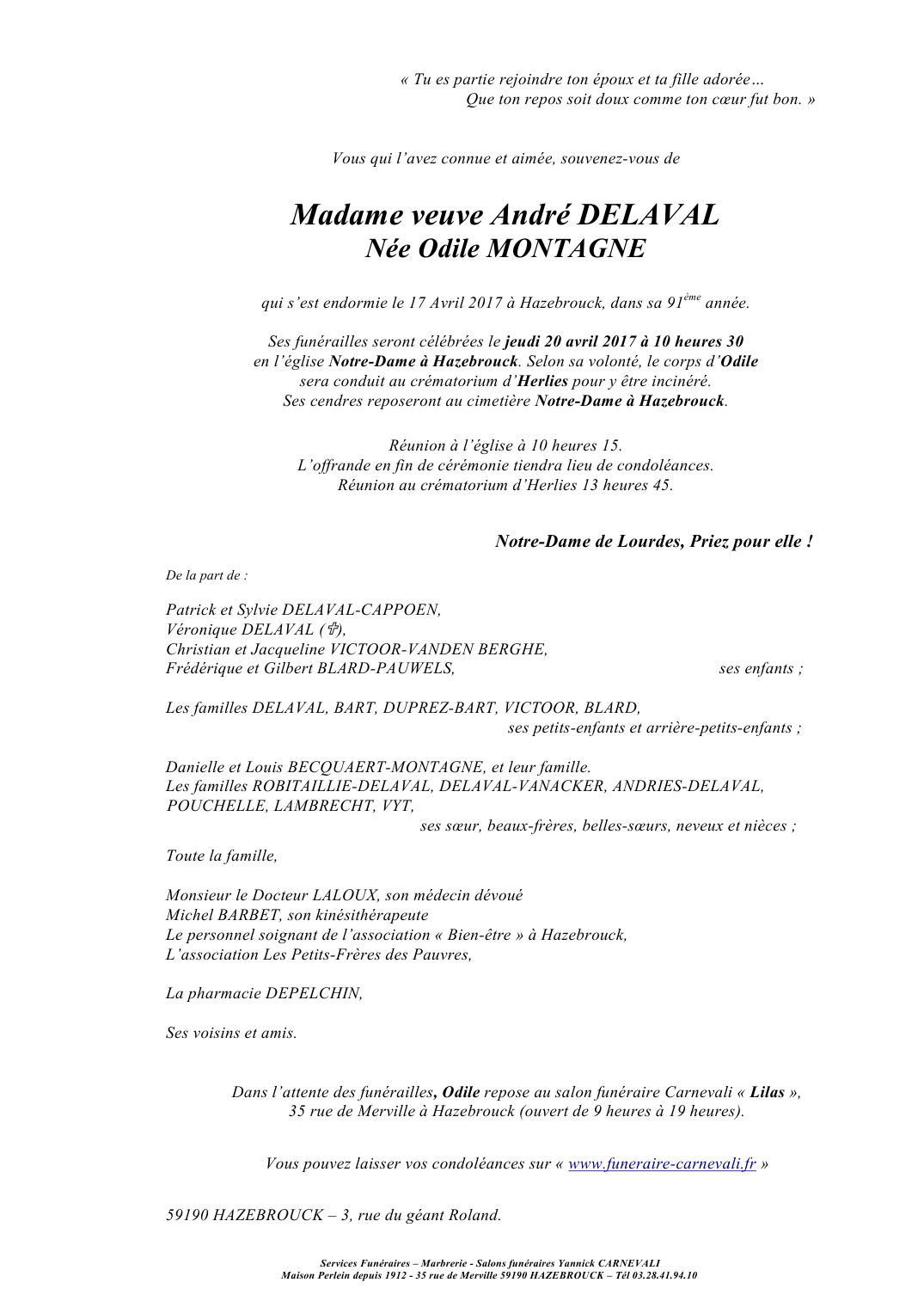 Veuve de Monsieur André DELAVAL