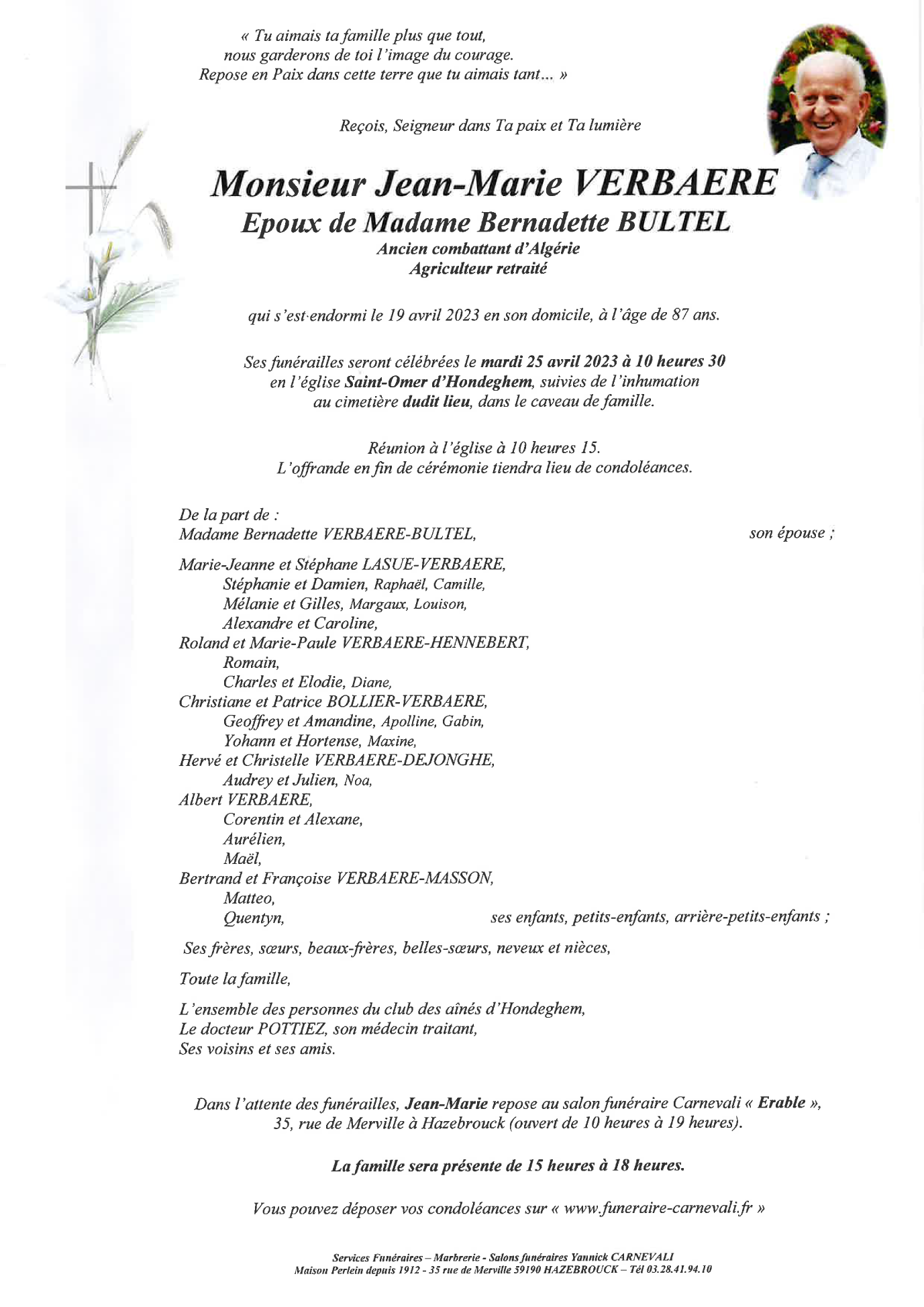 Décédé à Hondeghem (59190, France) le mercredi 19 avril 2023 à l'âge de 87 ans
