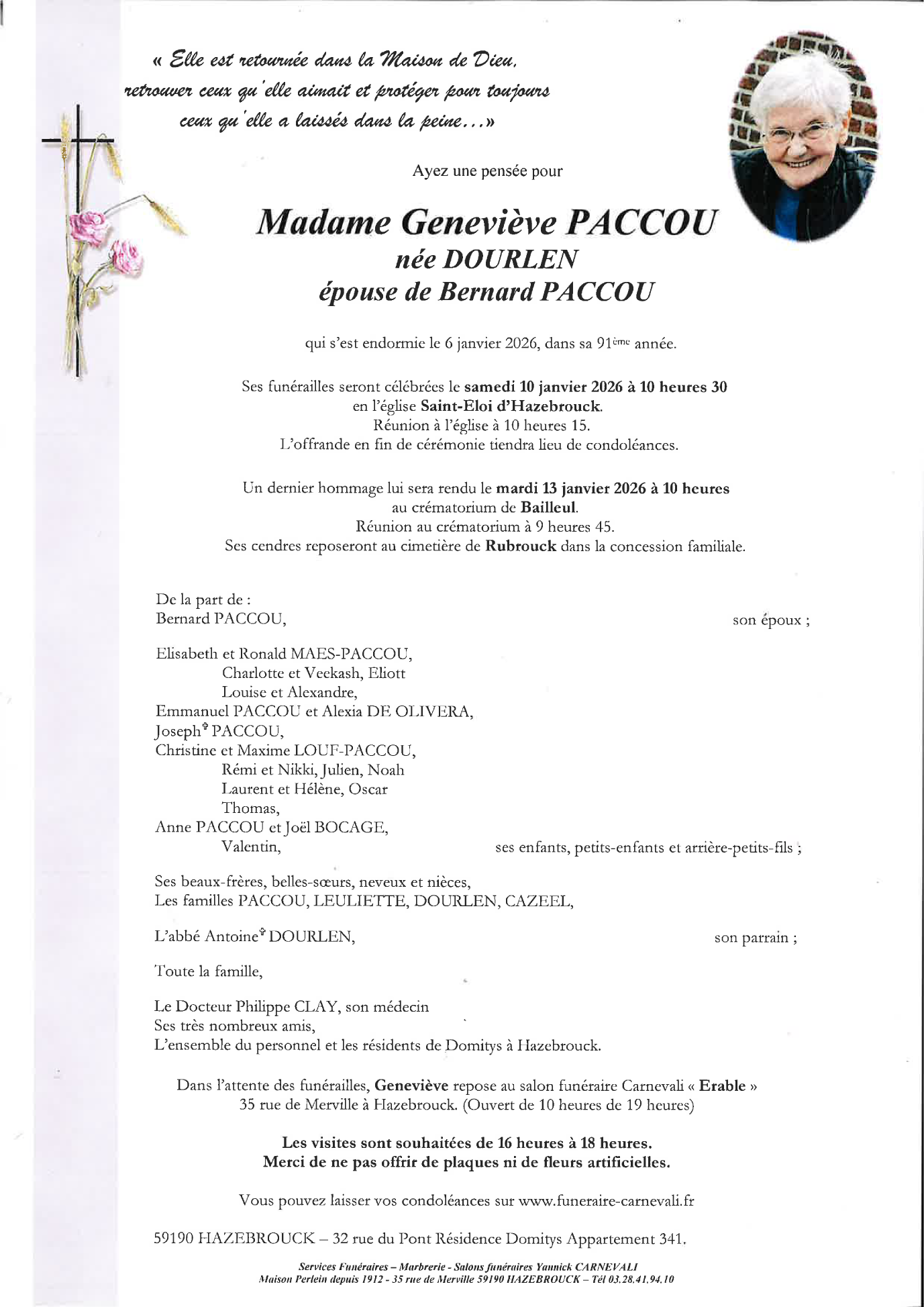 Madame Geneviève PACCOU née Dourlen