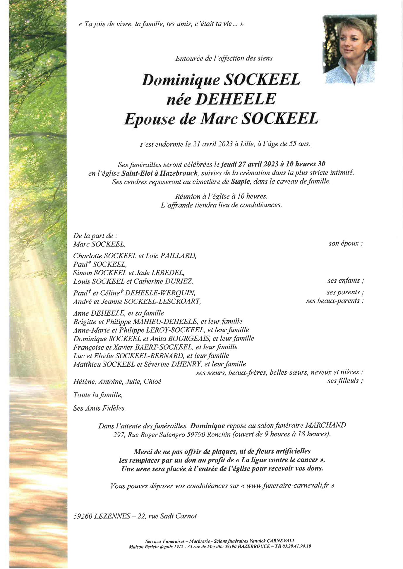 Décédée à Lille (59000, France) le vendredi 21 avril 2023 à l'âge de 55 ans