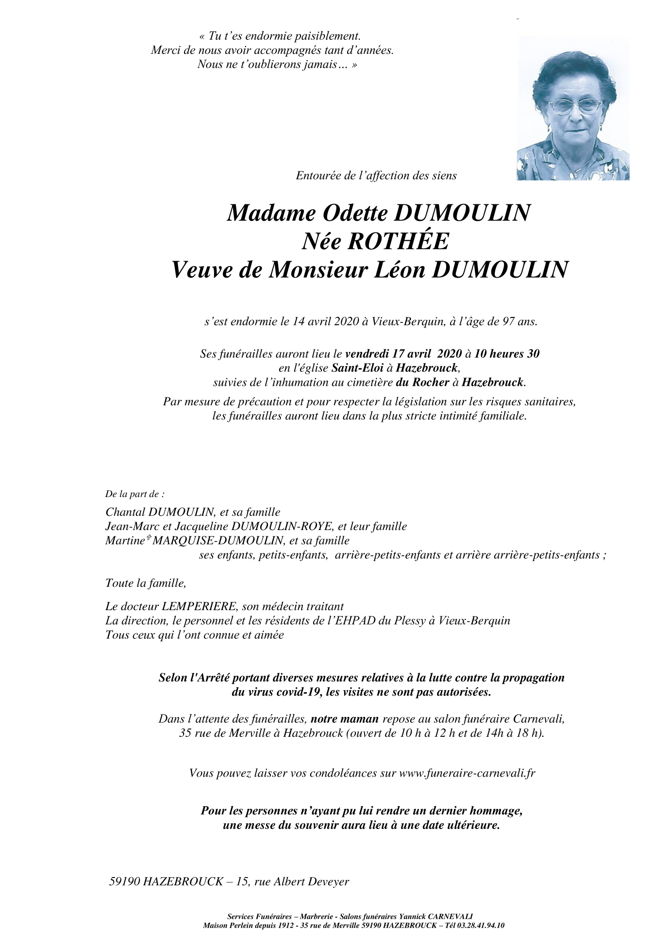 Décédée à Vieux-Berquin (59232, France) le mardi 14 avril 2020 à l'âge de 97 ans
