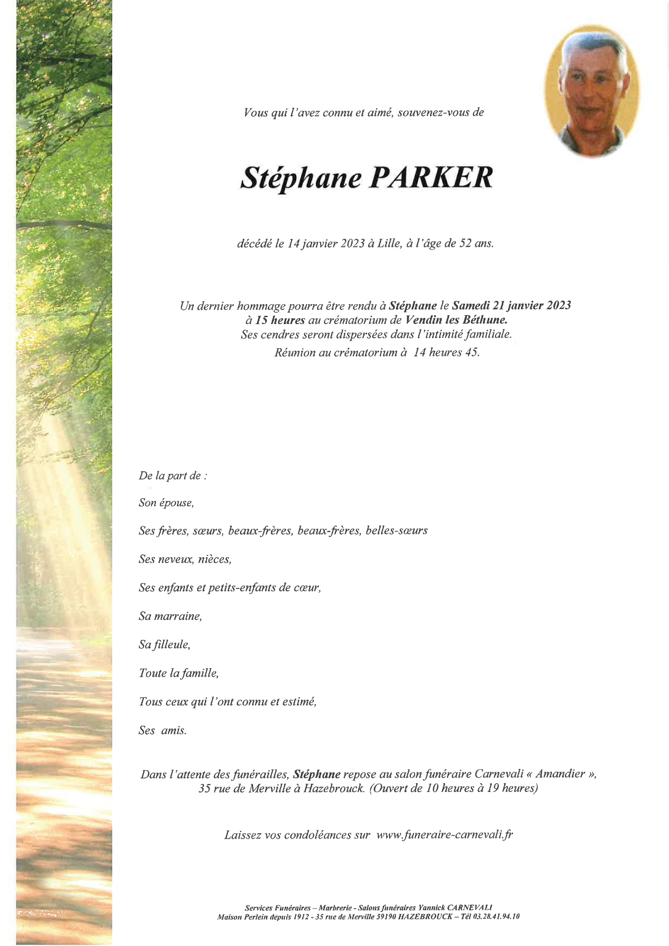 Décédé à Lille (59000, France) le samedi 14 janvier 2023 à l'âge de 52 ans