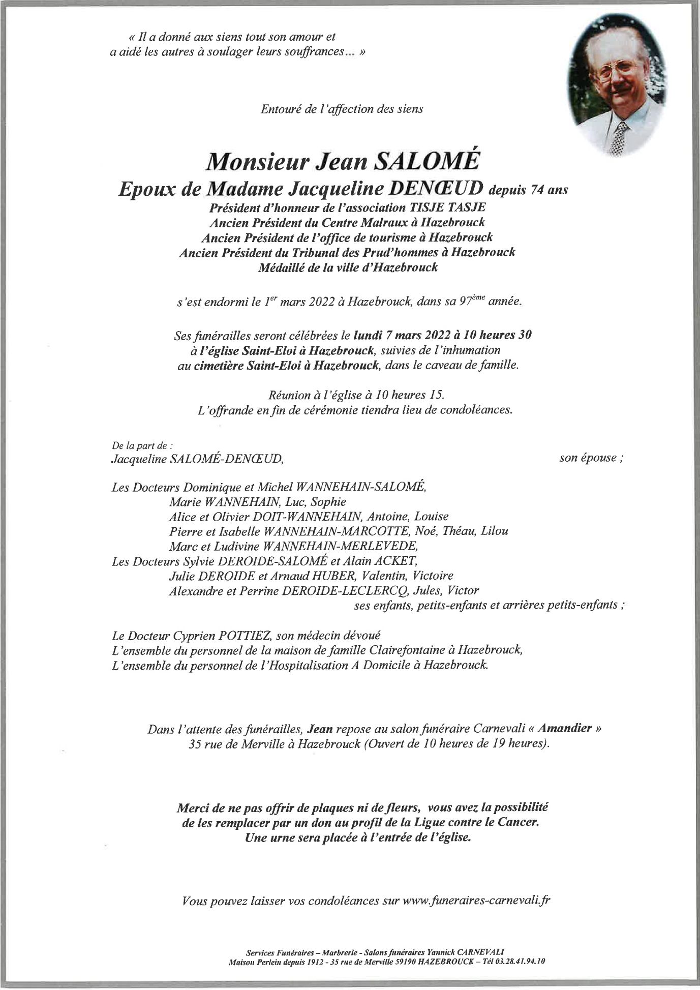 Décédé à Hazebrouck (59190, France) le mardi 1 mars 2022 à l'âge de 96 ans