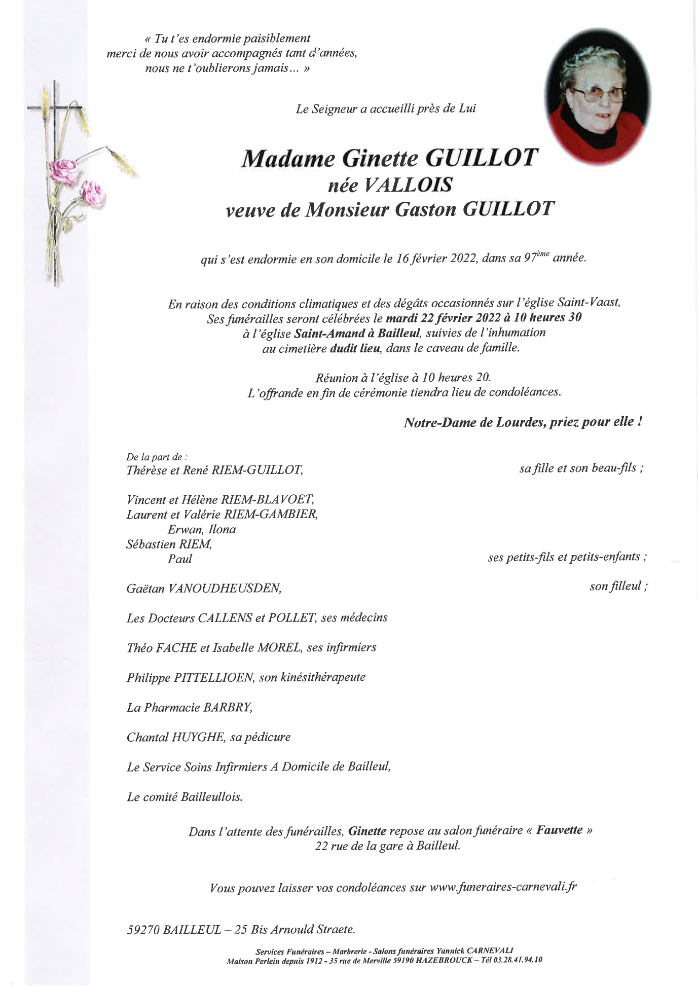 Madame Ginette GUILLOT née VALLOIS