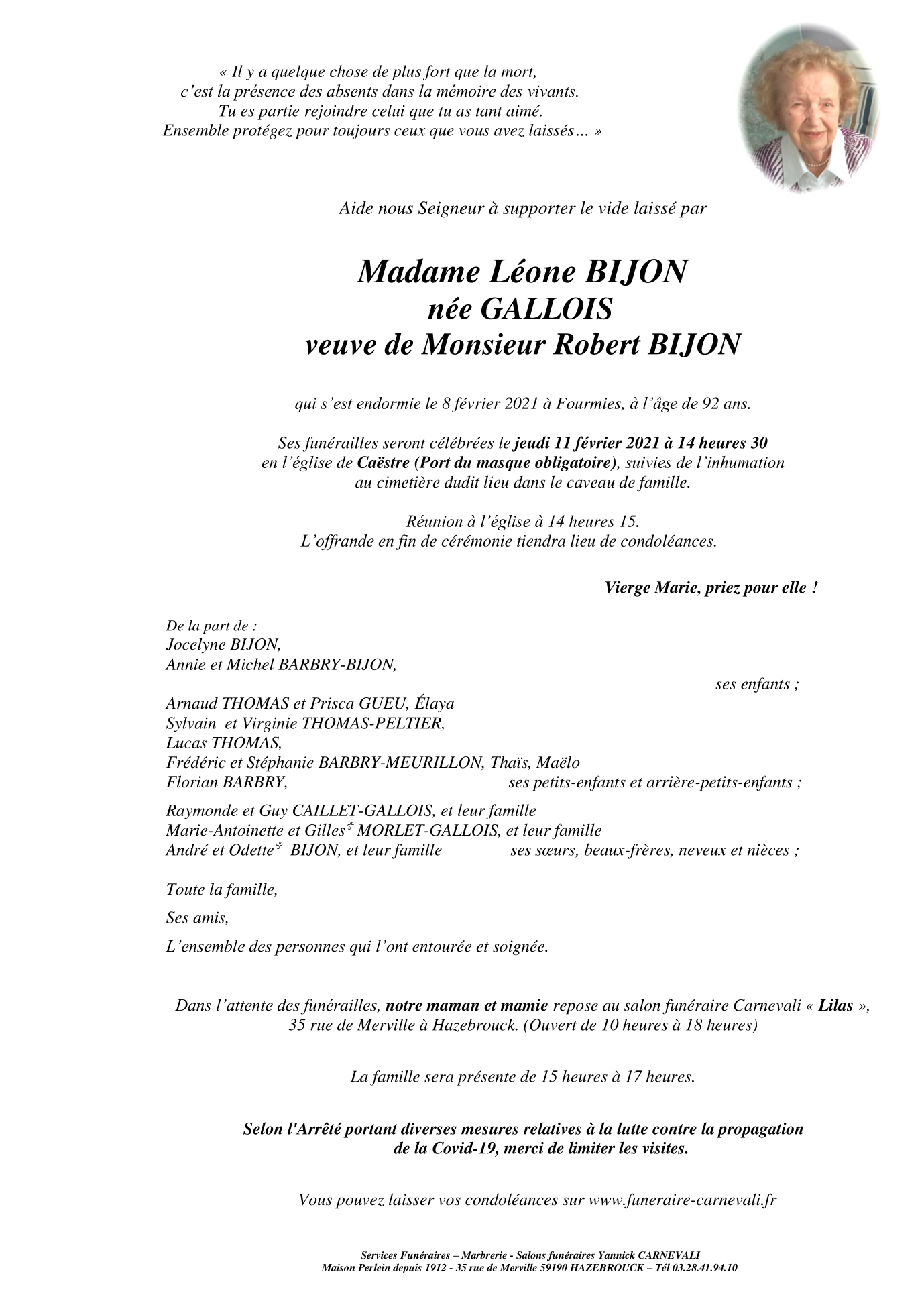 Veuve de Monsieur Robert BIJON